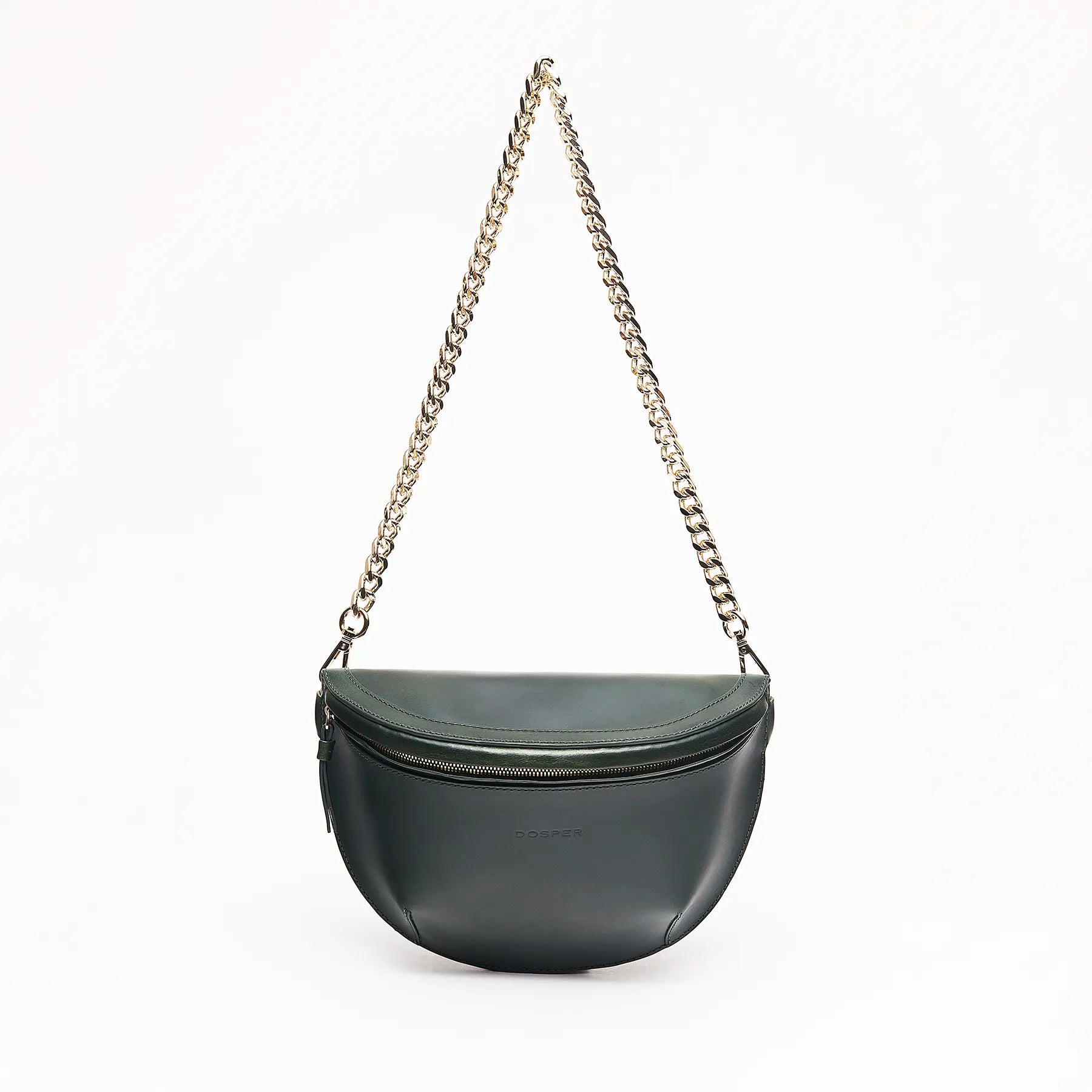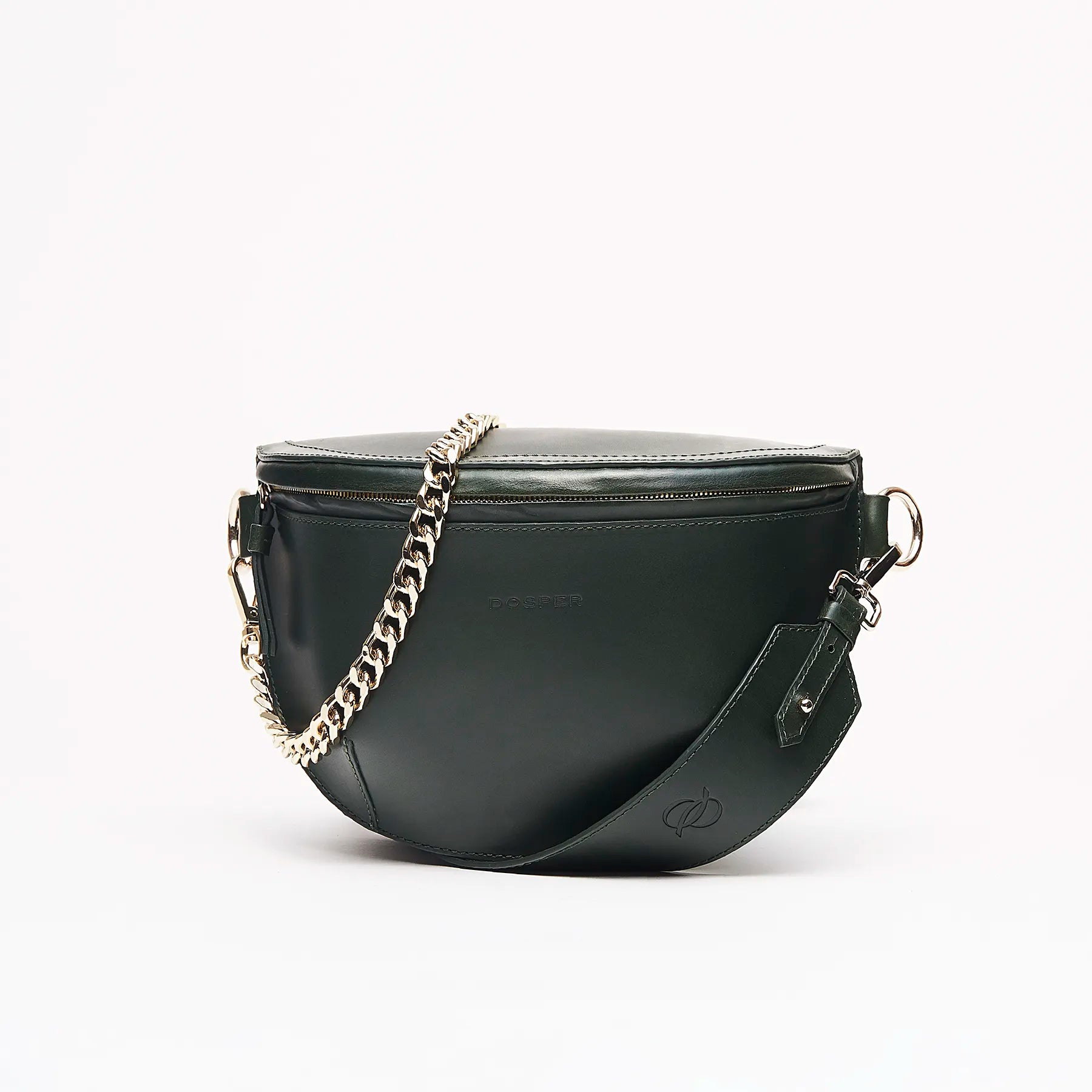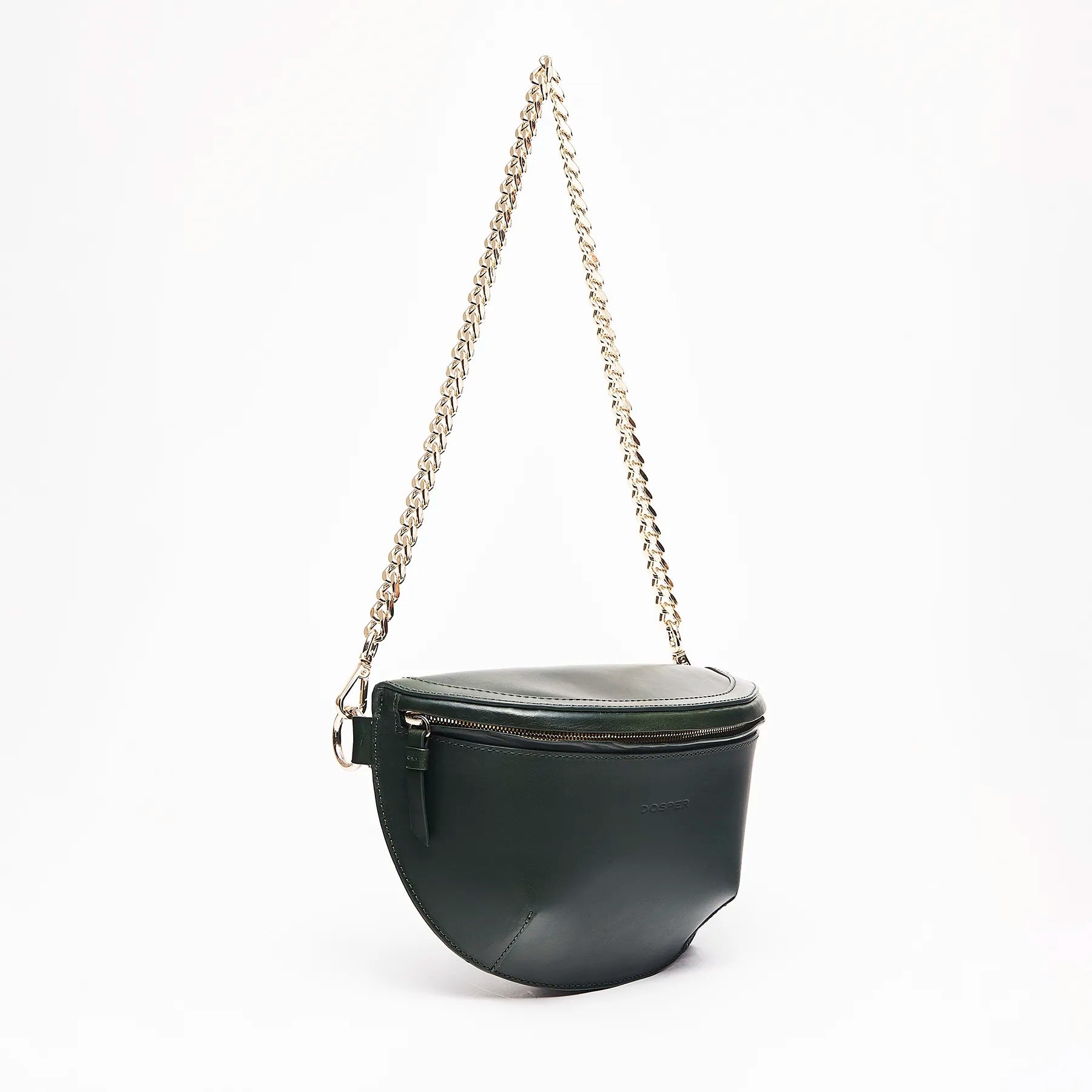 Contiene dos tipos de asas: una extraíble y ajustable de piel para llevar como bandolera y una cadena metálica no ajustable para colgar en el hombro.